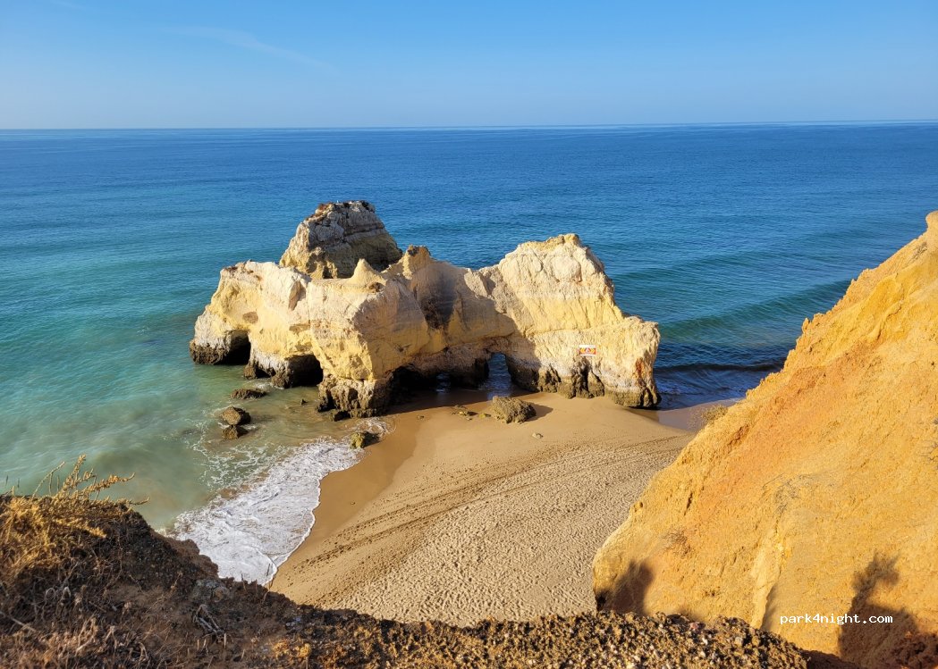 Da Camper an der Algarve wenig Möglichkeiten haben, so nah an einen sehr schönen Felsenstrand zu kommen, ist dieser Platz perfekt. Wir kamen heute morgen. Das Tor stand offen und zum bezahlen haben wir nix gefunden. War alles frei. Jetz, 10.00 Uhr, füllt sich der Platz mit PKW's der Badegäste. Sehr schöne Aussicht auf die Badebuchten mit ihren Felsengebilde. Steintreppen führen an den Strand.