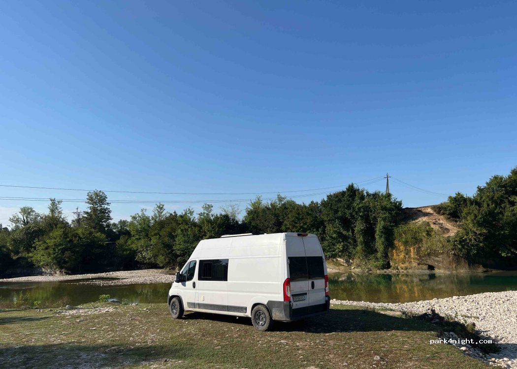 Bonito rincón junto al río, lugar perfecto para nadar. Los últimos metros son por una pista pedregosa un poco más empinada, tuve que hacer 2 intentos antes de volver a subir con mi Fiat Ducato 2wd. Pero con un poco de impulso, es fácil. Muy buena conexión a internet.
