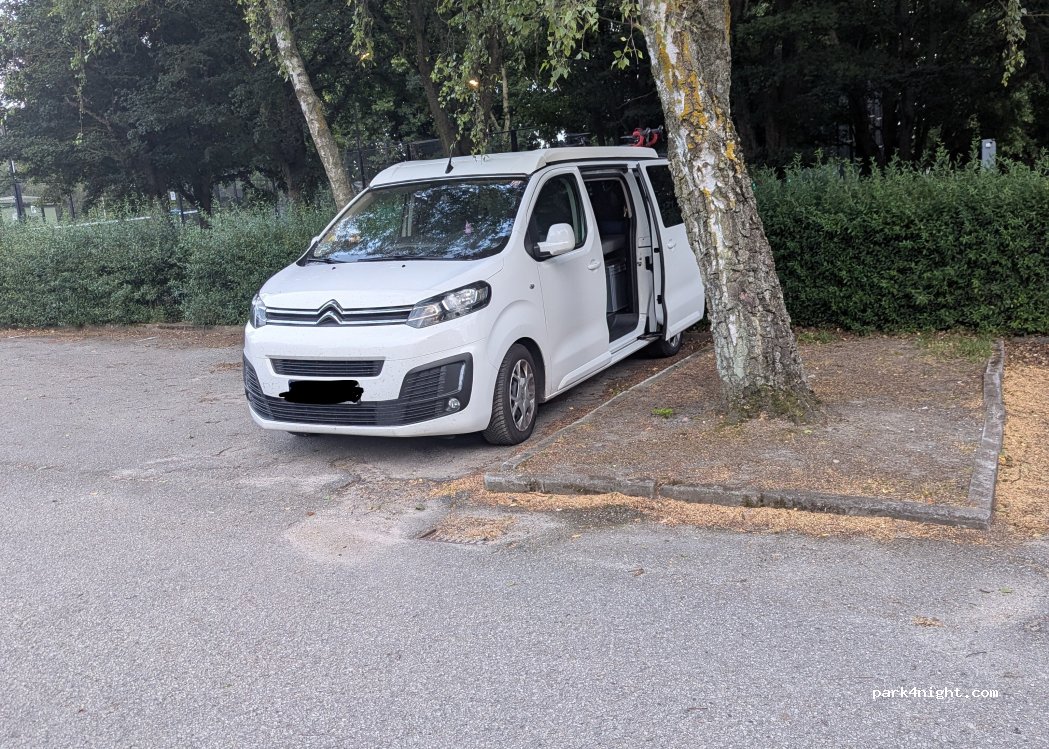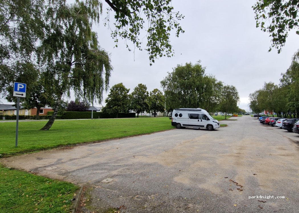 Wir haben hier nach der Fährüberfahrt übernachtet. Ab 23:00 Uhr ein ruhiger und leerer sowie kostenloser Parkplatz, der unmittelbar an einem Sportplatz liegt. Am nächsten Morgen (ab 09:00 Uhr) füllte sich der Parkplatz mit Fahrzeugen von Sportlern. Für eine Nacht sehr gut geeignet.