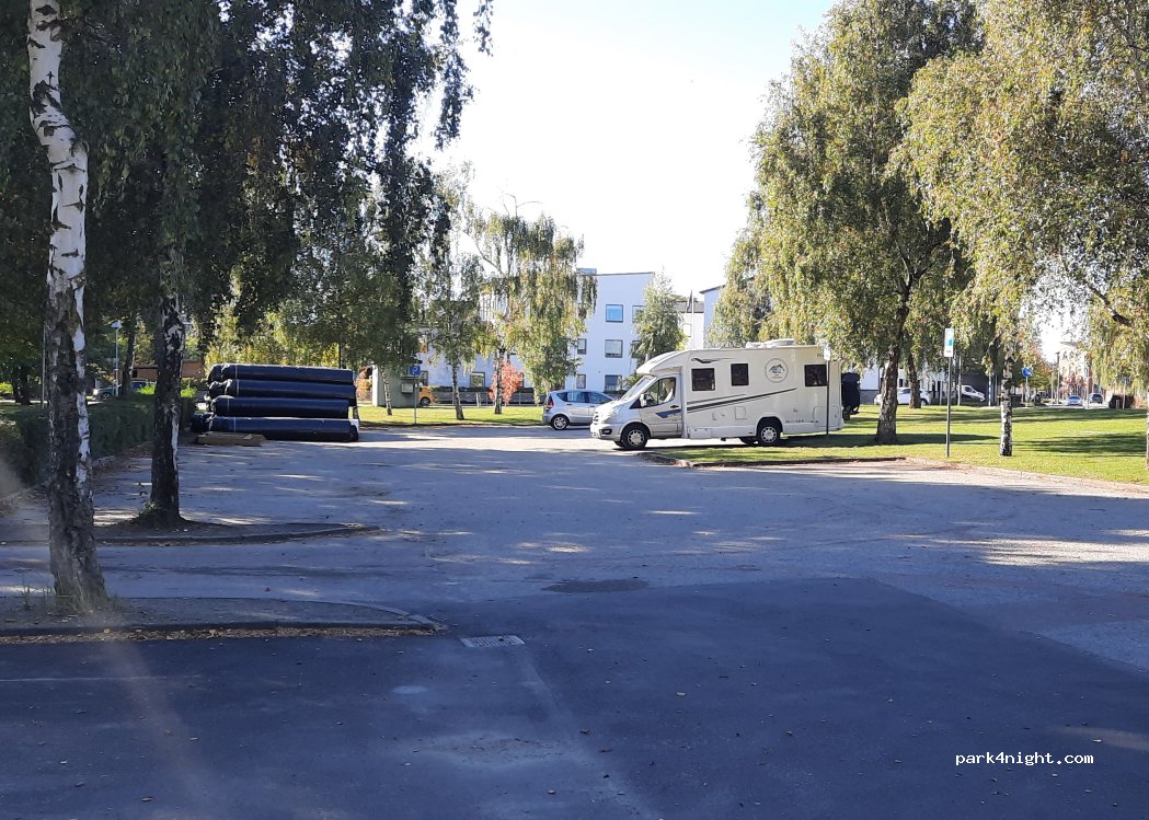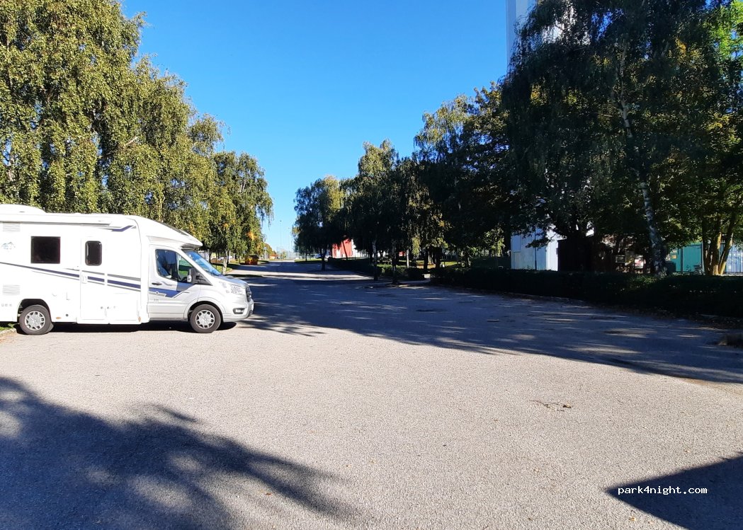 Ideale per una notte in prossimità del porto di Trelleborg. Parcheggio gratuito su asfalto, leggermente in pendenza. Nessun servizio. Senza traffico e in silenzio soprattutto tra le 21 e le 7am.