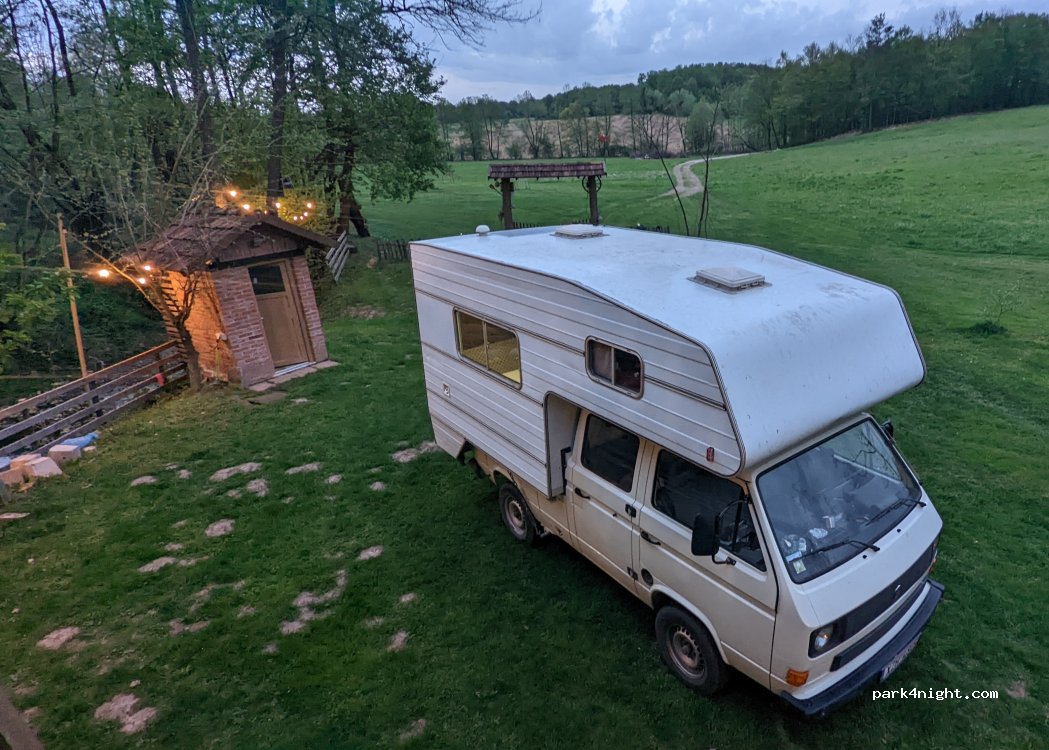 In mitten der Natur. Sehr ruhig und der Gastgeber ist sehr nett. Wurden mit Schnaps begrüßt und haben viele Tipps für unsere weitere Route erhalten. Sanitäranlagen gut und Strom ist auch vorhanden. Werden sicher wieder kommen.