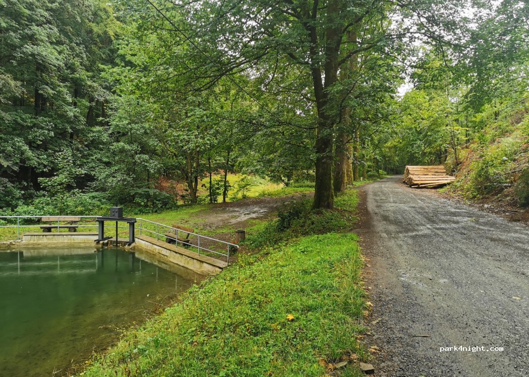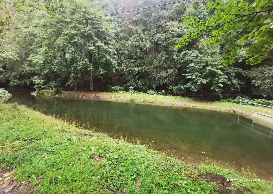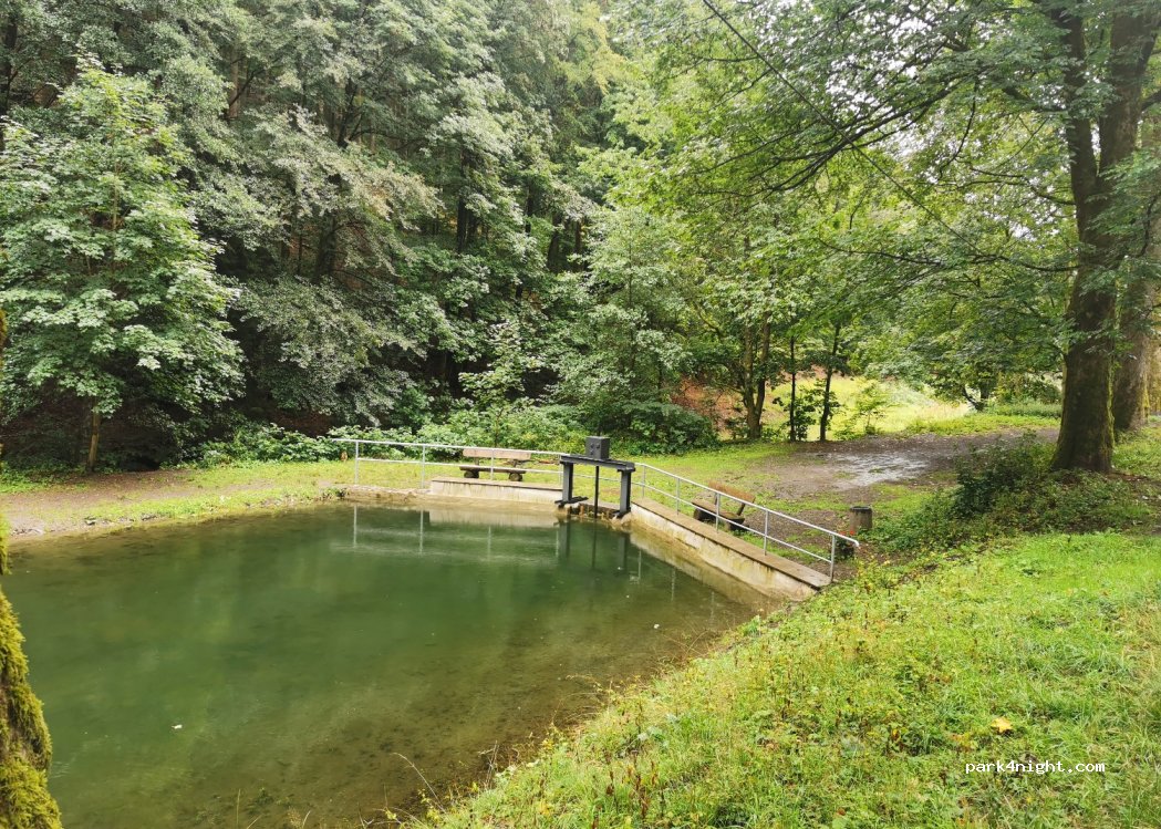 Platz am Waldrand an einem kleinen Teich mit Fluss. Sehr ruhig keine entsorgung ein mühleimer ist vorhanden. Bitte sauber halten.. Nachts sehr ruhig. Früh ab und an Wanderer die vorbei kommen