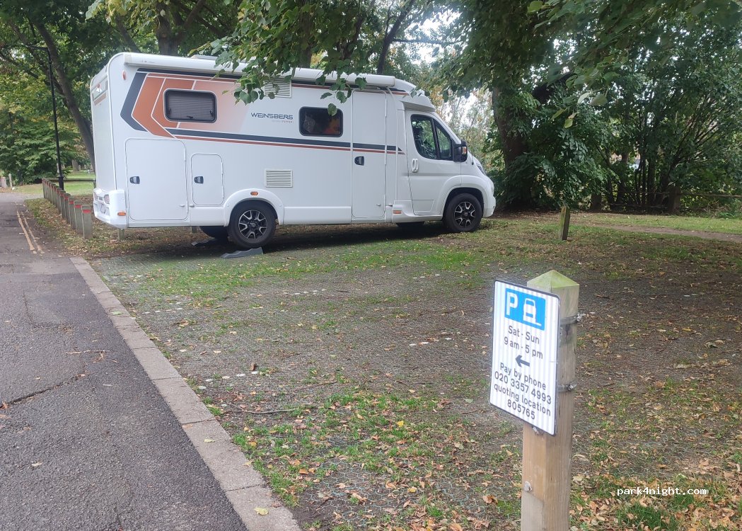 Schöner Platz direkt an der Themse, an einer wenig befahrenen Straße. Es gibt viele Parkbuchten mit Holzbegrenzungen. Für kurze Wohnmobile kein Problem. Teilweise fehlen die Begrenzungen sodass auch längere wohnis (wir 6.70m) kein Problem haben. Die Plätze sind nur am Wochenende kostenpflichtig. Mit den öffentlichen Verkehrsmitteln ist die Stadt gut erreichbar. Flugzeuge sind hörbar.