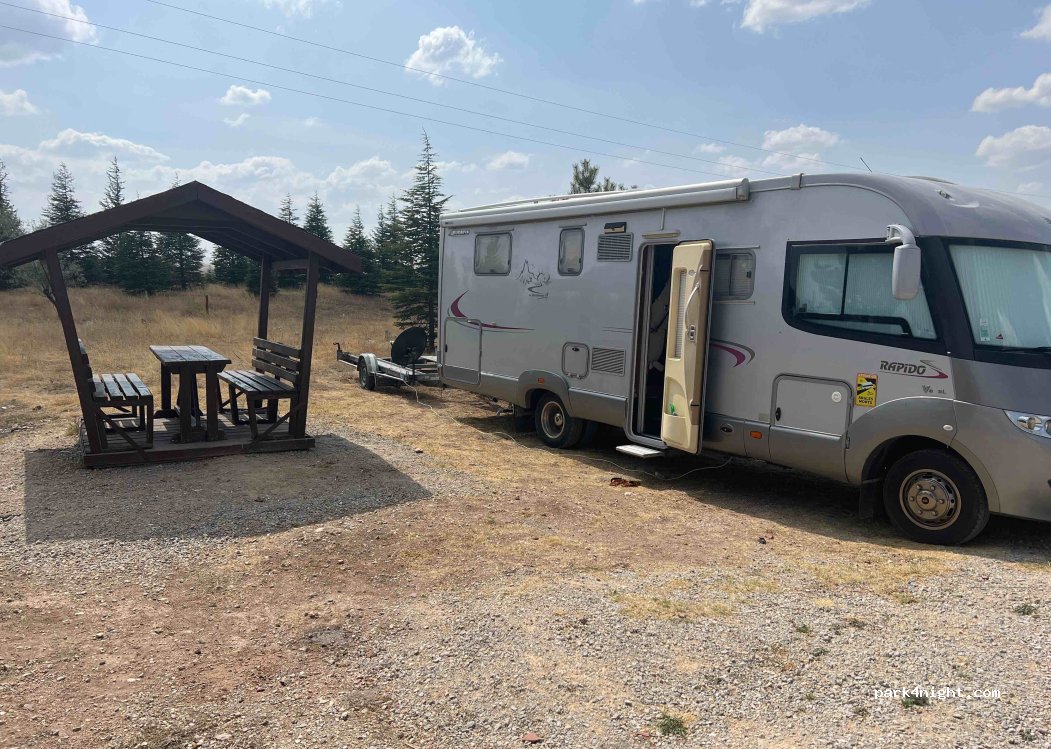 Picknickplatz mit Tischen, Bänken und einigen Steingrills. Toiletten in der Nähe und Wasserbrunnen, Mülleimer. Nachts ruhig trotz der Straße nebenan