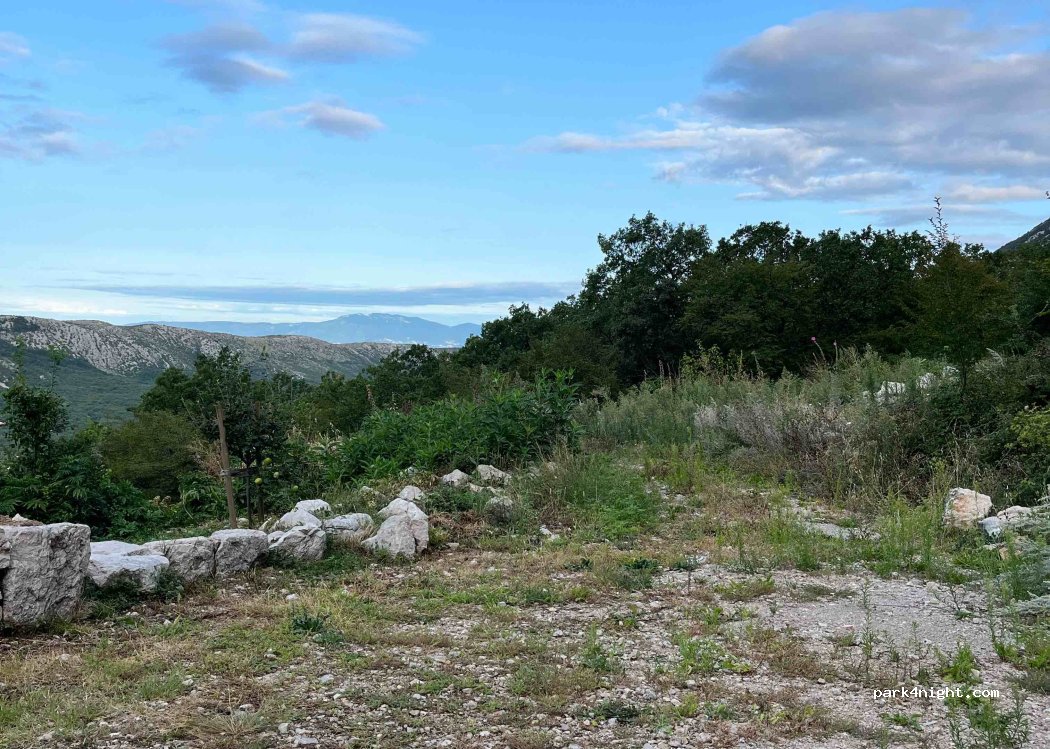 Free tarmac space facing the valley with a small adjacent gravel space.