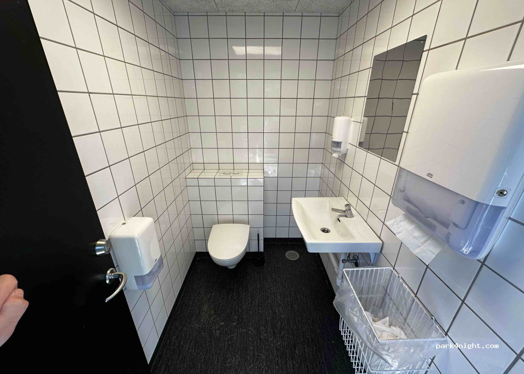 Parkplatz am See. Neben dem Ruderverein. Nachts ruhig. Eine behindertengerechte Toilette.