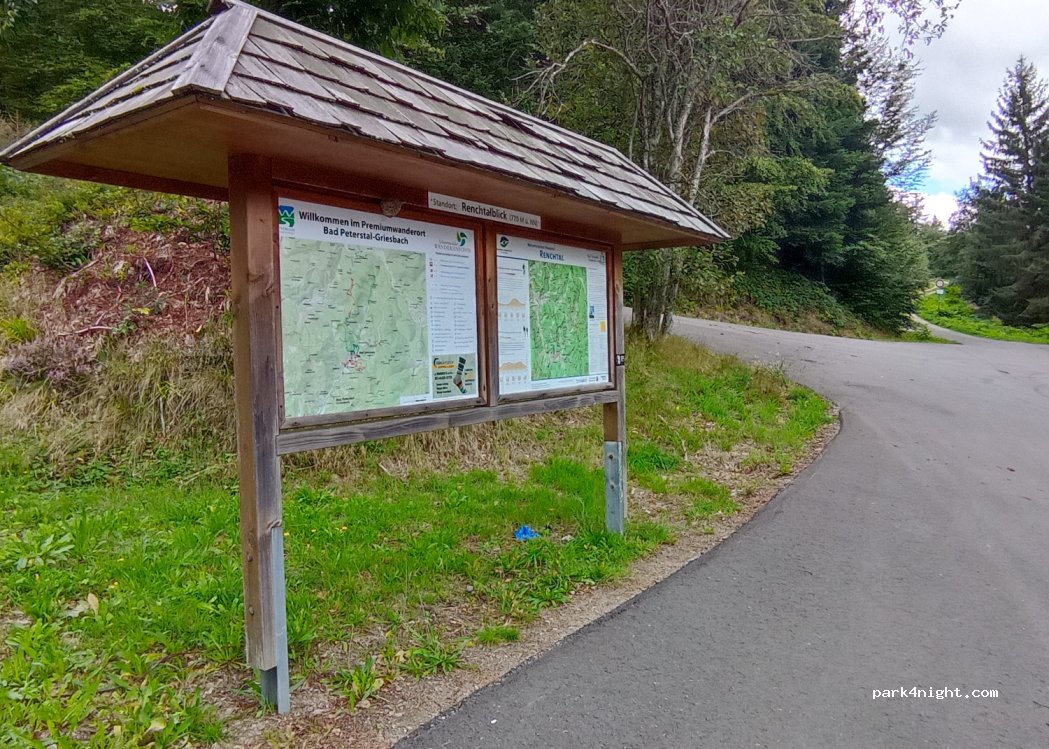 Geteerter Parkplatz. Aussichtpunkte sind bei den Wanderungen. Aber auch bei der Anfahrt sind schöne Berge zu sehen.