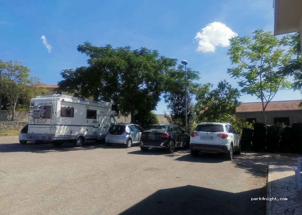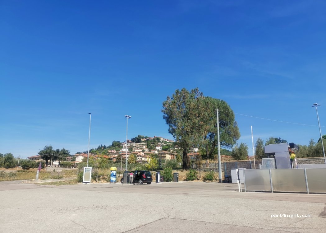 Parking sous Montegabbione, environ 17 minutes pour y arriver à pied (en montée), possibilité d'acheter une bouteille de gaz, il y a un bar et une station service, une petite aire de jeux pour les enfants