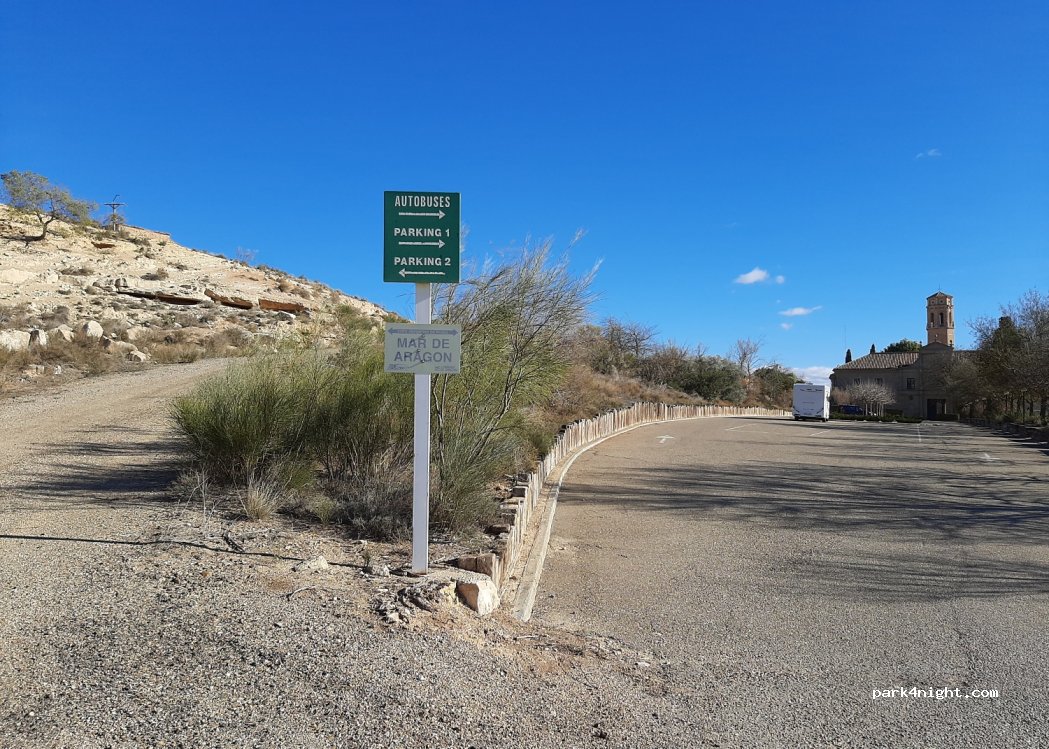 Parking 2 del monasterio de Rueda. Se trata descampado sin asfaltar con mucho espacio.