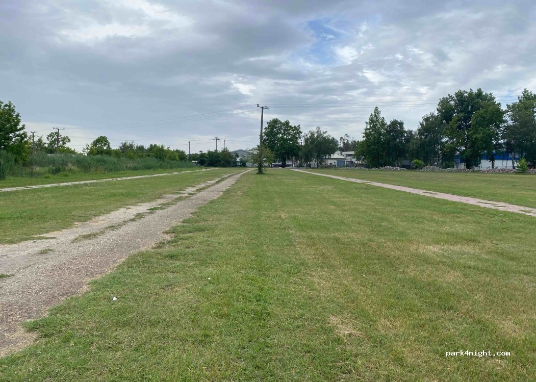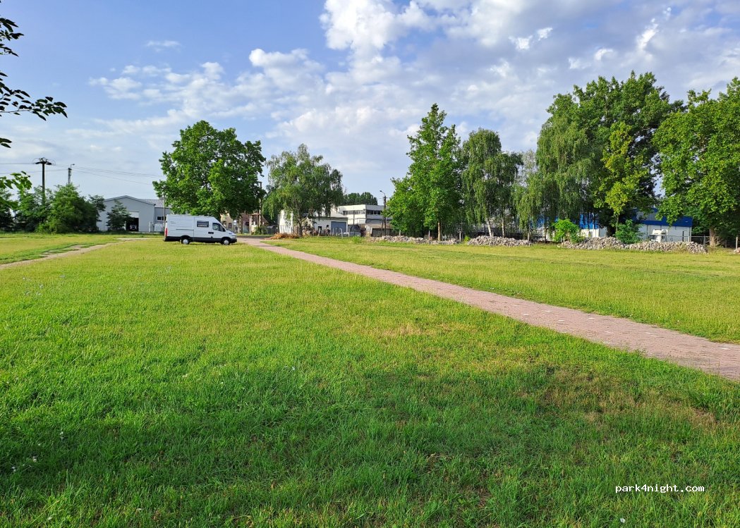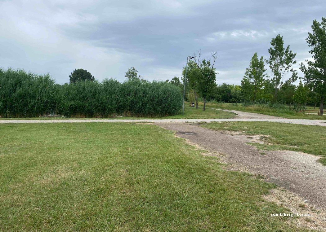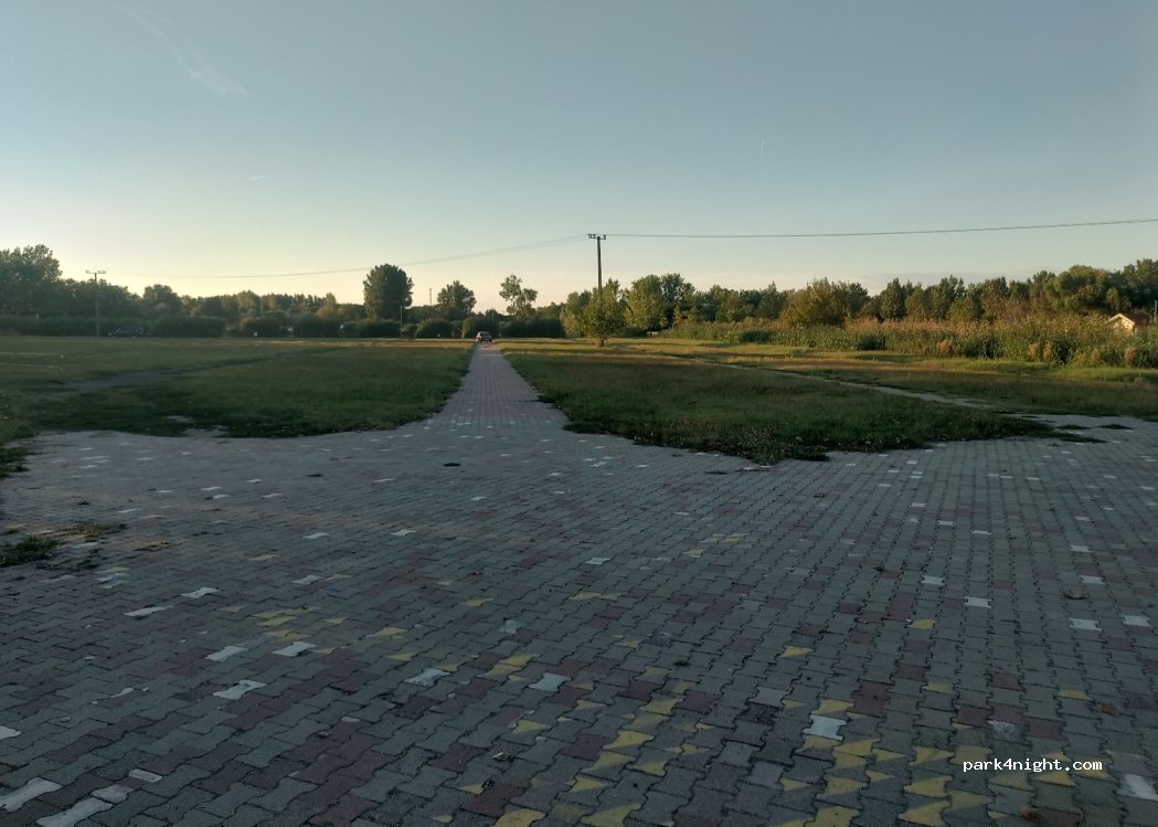 Stationnement combiné gazonné et pavé près d'un lac de pêche sur une base de loisirs. Le marché principal de Kistelek se tient chaque premier dimanche du mois sur cet emplacement . C'est l'un des plus grands marchés de la région. Il ne faut donc pas stationner à ce moment-là...