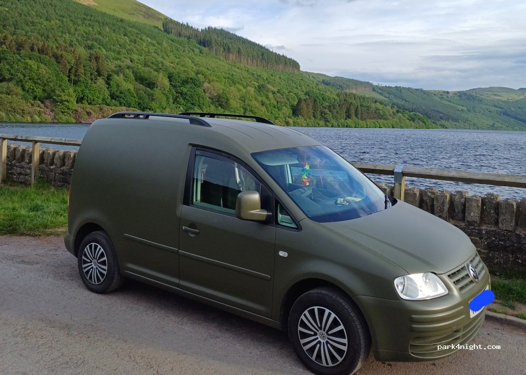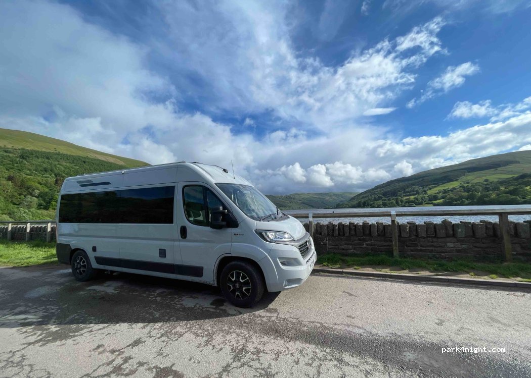 Beautiful lay-bys on the reservoir. well known free camping spot as their is usually a few other campers here. turning from talybont direction can be a little tight (wall has been hit) but lots of room to make a proper manoeuvre. park respectfully as the laybys act as passing spots also. too many people parking blocking all of the layby