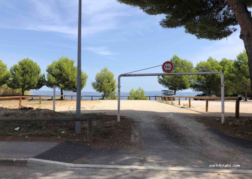 premier nuit avec la tente de toit de Decatlon la mh900 , Parking tranquille , Un peu de bruit ( fete de la musique) vue sur l étang de martigue... Poubelle sur le parking. Pas de toilette ni de douche, mais chemin de randonner qui long l étang jusqu a martigues centre..... hauteur 1.90