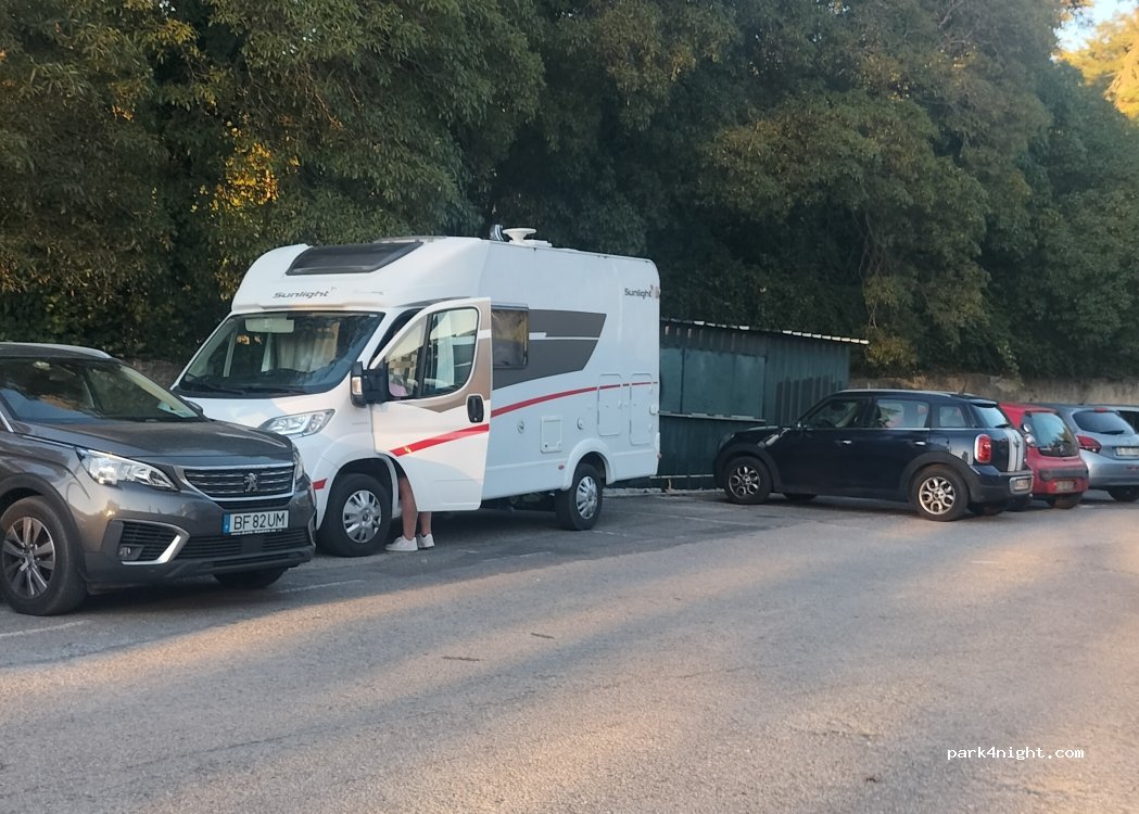 Quite place to park over night. We left our camper from 4 4.30 went to visit the castle of Peña, came back around 8 8.30, no issue and we stayed over night very quiet. It’s a bit on a slope but other than that seems fine.