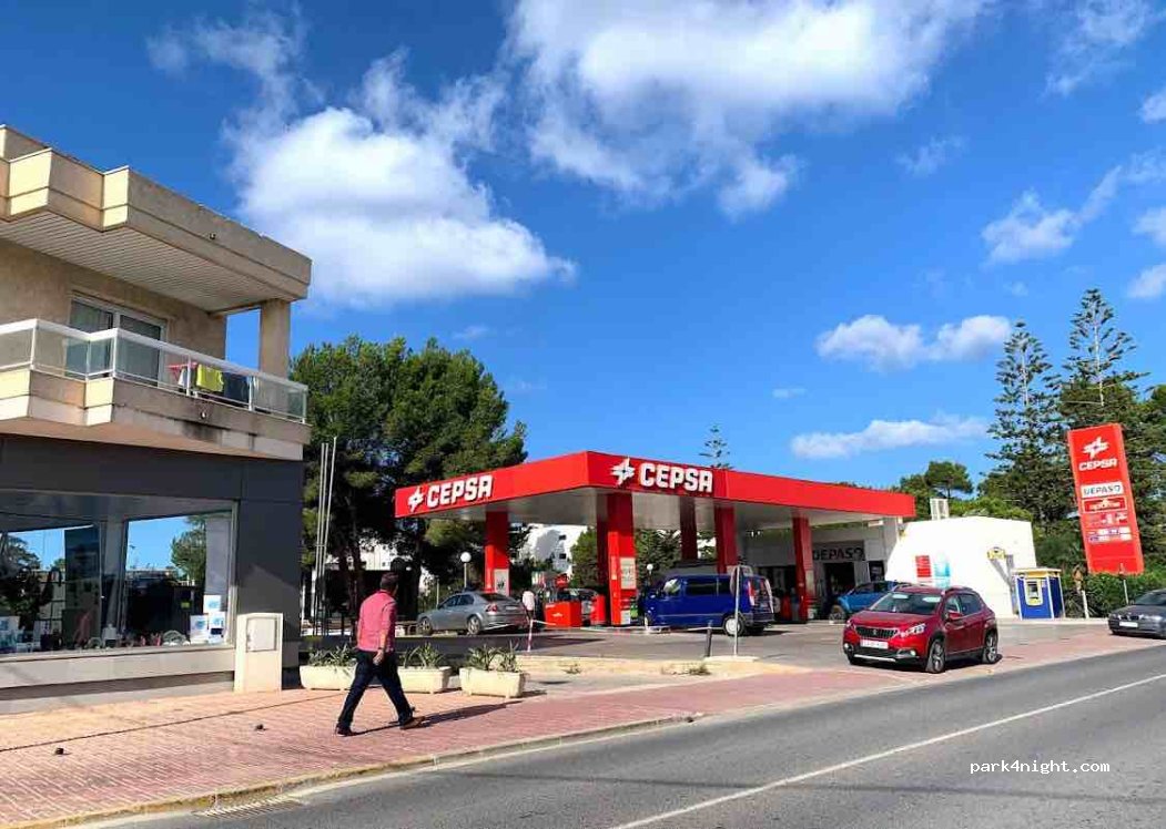 Station-service CEPSA. Ils ont de l'eau du robinet gratuite, je ne sais pas si elle est potable. J'ai rempli ici deux fois sans problème.