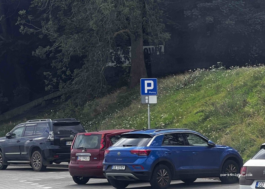 Parking municipal payant directement sur la promenade avec vue sur la mer. Coût 14 zł pour 3 heures, gratuit le week-end. La plupart des places de stationnement sont exclues pour les camping-cars, mais il y a 2 ou 3 places où les campeurs sont autorisés. (Nous sommes restés 2 jours et personne ne s'est plaint. Relativement calme et paisible)