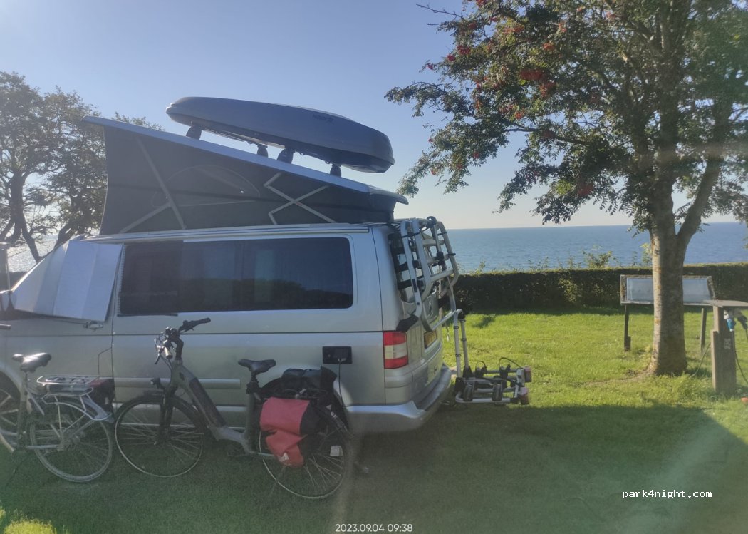 Iets gedateerd, maar schoon en voldoende voorzieningen. Zoals vaak het geval zijn er aan de zeekant een aantal camperplaatsen gereserveerd voor passanten. Door bebossing rondom is de vaak westenwind nauwelijks voelbaar. Spar supermarkt op 7 km (kom je langs) in Horne.