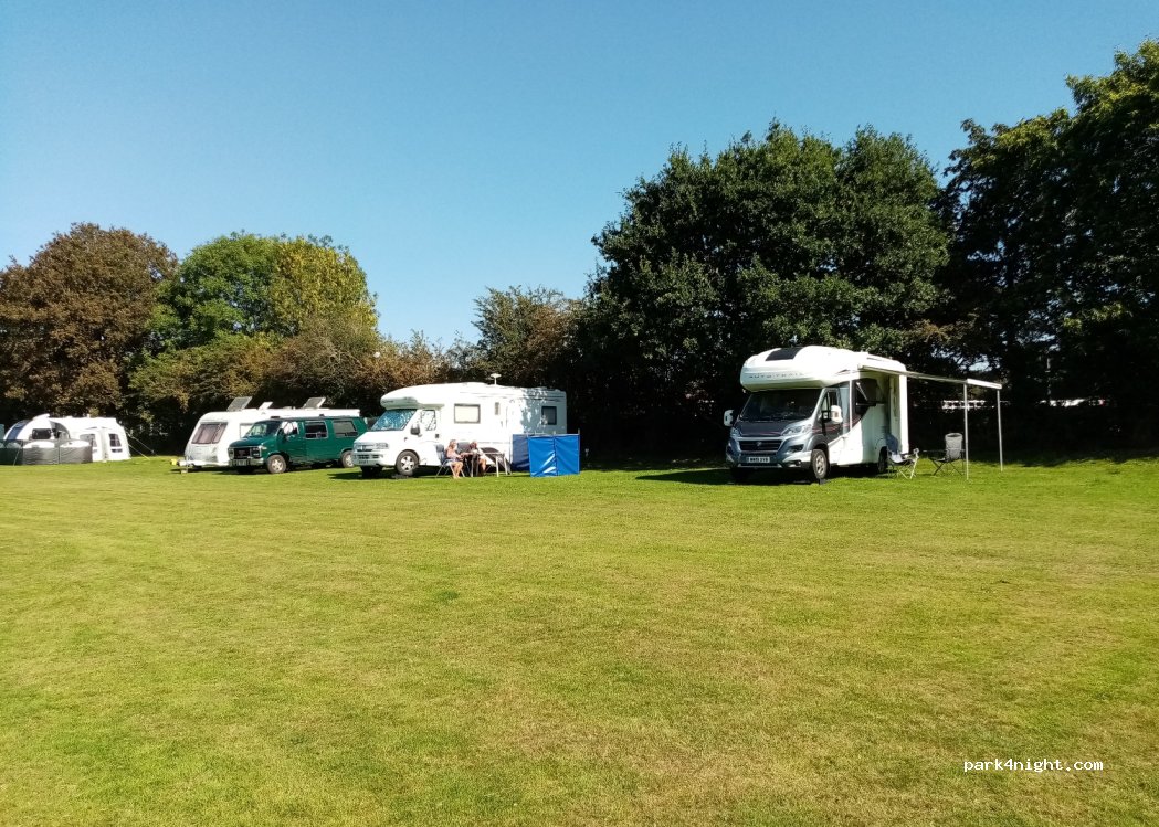Decent CL, booking online only. Loads of space, park in any orientation you choose. Water tap half way down the field to fill up. Grey and black waste there also, sadly it was full to over flowing so can’t use it, assume the sewer is blocked. Only one other motorhome here currently. Seems quite quiet.