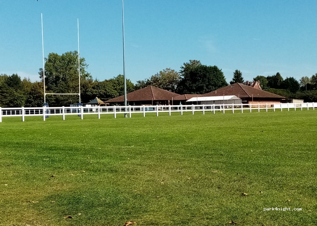 On side of old Leamingtomians rugby club, bogs&showers nice & clean, beer on tap in club house, big flat pitches,