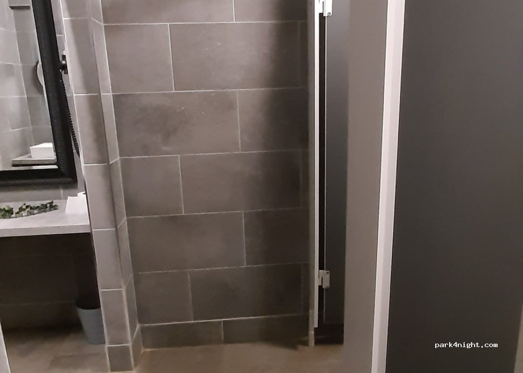 Prima voor 1 nacht. Langs het trainingsveld van de rugbyclub. Elektriciteit en water aanwezig. Ruime plek, stonden er alleen. Sanitair ver weg. Toiletten vernieuwd, douches verouderd. Veel aandacht voor hond aan de lijn, maar de clubleden laten ze allemaal los lopen. sAvonds een vos gezien op het veld.