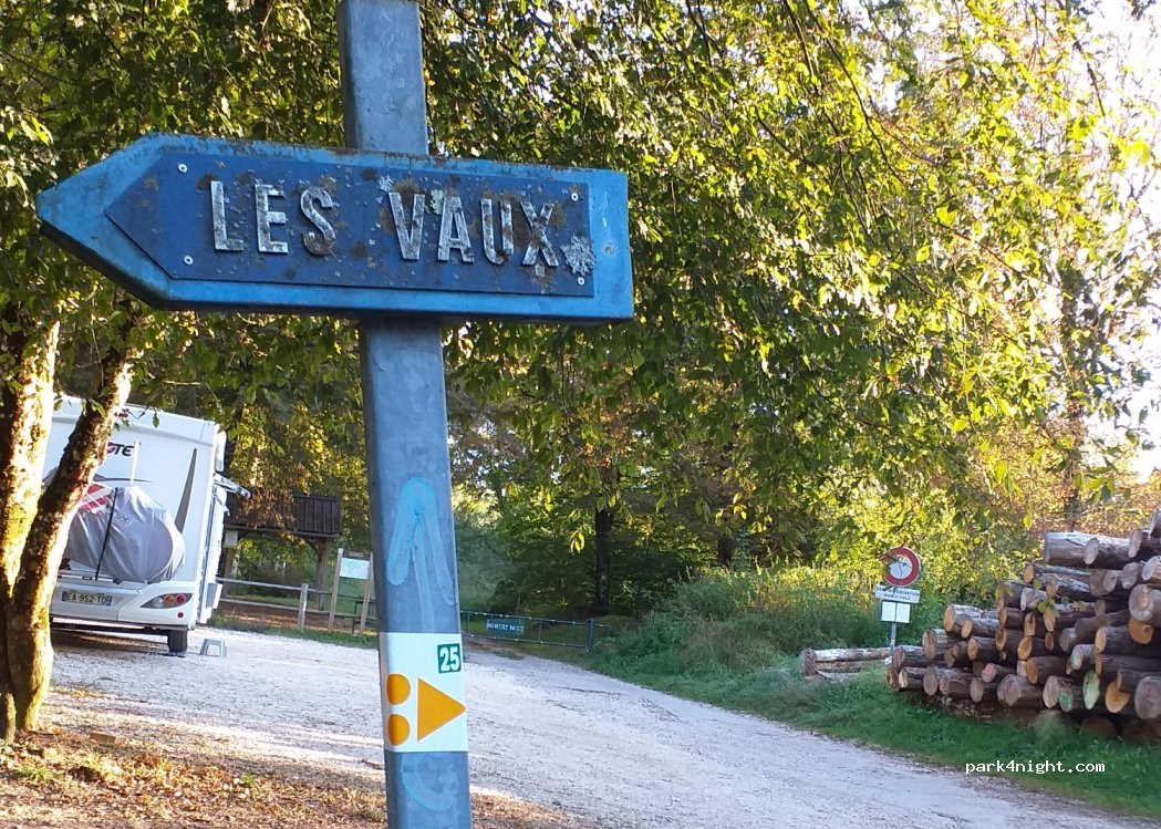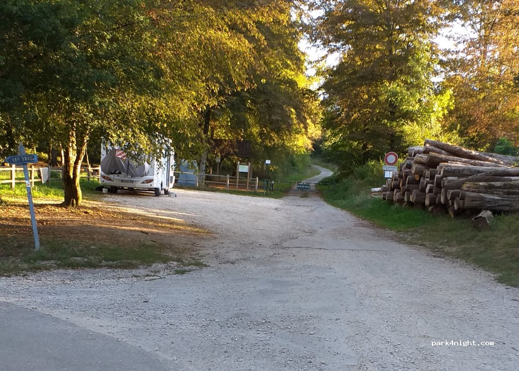 Petit emplacement pour un ou deux camping car, devant un parcours de santé.
