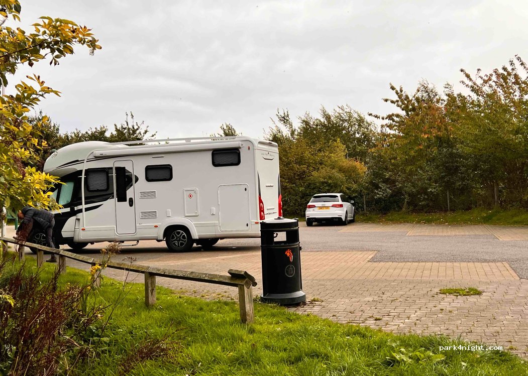 I’ve stayed here overnight on 2 occasions. Bins available and entrance to walks in the park. The first night I stayed I had a lovely quiet night. The second it was noisy with a group of people. Stopped about 11pm, would stop here again