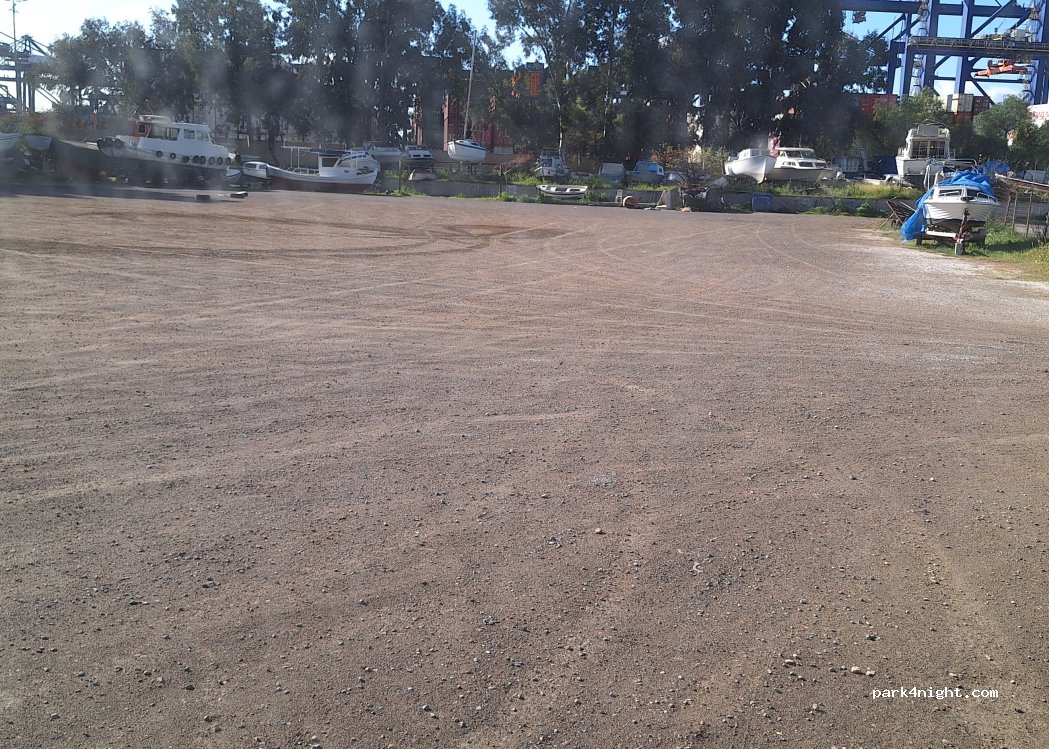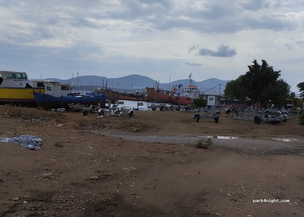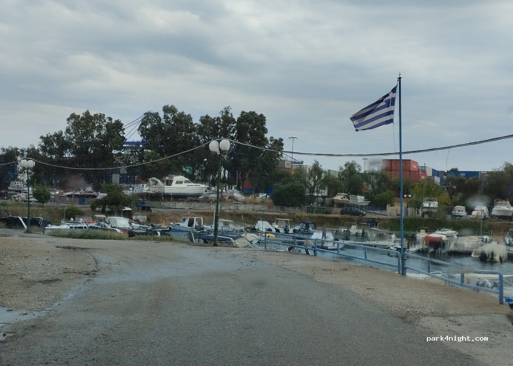 nous avons demandé l'accord au gérant du port, il a dit ok si on partait bien le lendemain matin. je conseille plutôt de se mettre sur le parking vers l'entrée car en face on entend les machines qui chargent les containers sur les bateaux. quelques voitures et piétons même la nuit. mais globalement ça dépanne pour 1 nuit avant d'aller visiter Athènes.