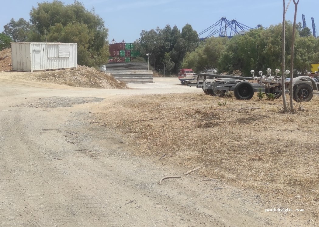 It is a public parking for trailers boats and cars. It's next to a little port for fisherman's boats. You can find shadow under the trees. There is a bus stop near the spot. We had there a very peaceful night.