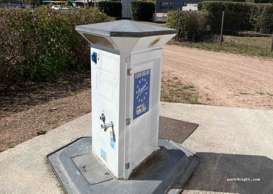 Possibilité de vider les eaux grises et noires gratuitement. Eau et électricité payantes à 2€ . Mais pas en fonction ce jour .