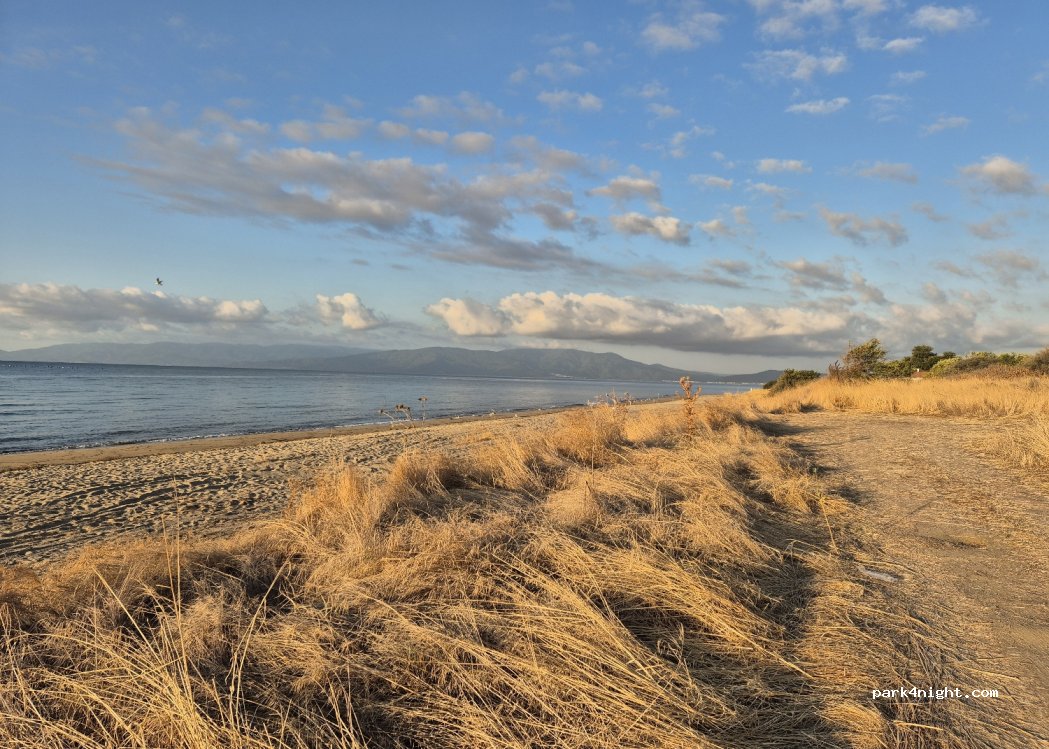 Schöner Platz zum Übernachten am Meer mit Dusche und einer Wasserleitung zum Wasser füllen. Man muss langsam fahren um die Einfahrt nicht zu verpassen. Bitte nehmen Sie Ihren Müll wieder mir...Strand sehr sauber.