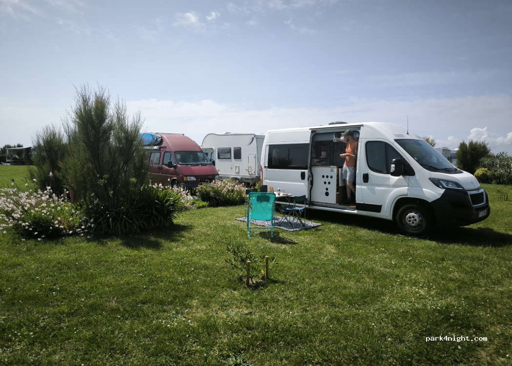 1 aire naturelle, pas d'ombre, venteux, à quelques pas de la plage. Service eau, électricité, wc, douches à notre disposition, prix correct.