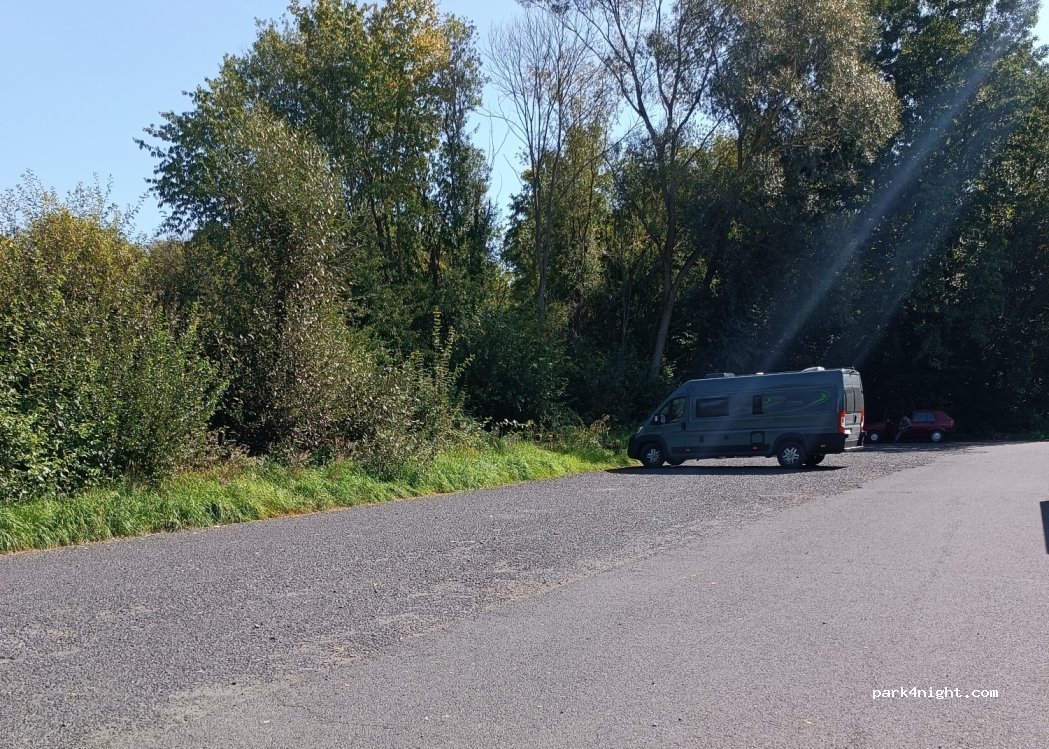 Grand parking pavé et droit entre Günthers U Motzlar. Espace pour environ 5 mobil-homes. Un arbre donne de l'ombre. Circulation le jour, plus calme la nuit.