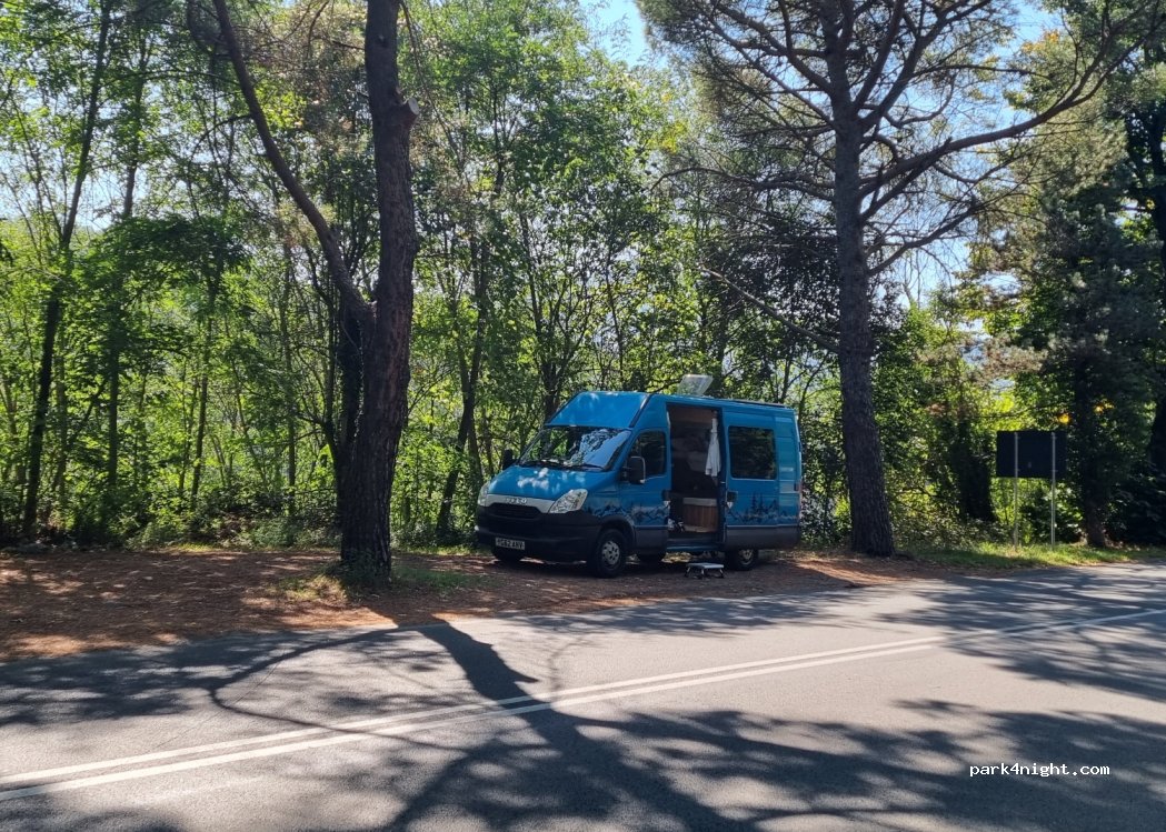 C'est une petite aire de repos dans les montagnes italiennes... c'est plat... paisible... pas beaucoup de voitures qui passent...