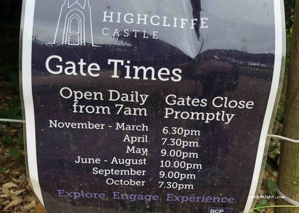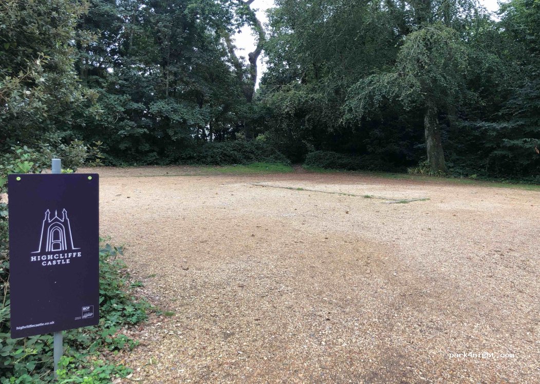 Parkplatz des Highcliffe Castle. Viel Platz für Fahrzeuge mit kurzem Radstand und ein paar gute Stellplätze für Wohnmobile. Bins und 4G. Toller Zugang zum Strand und zu den Sehenswürdigkeiten.