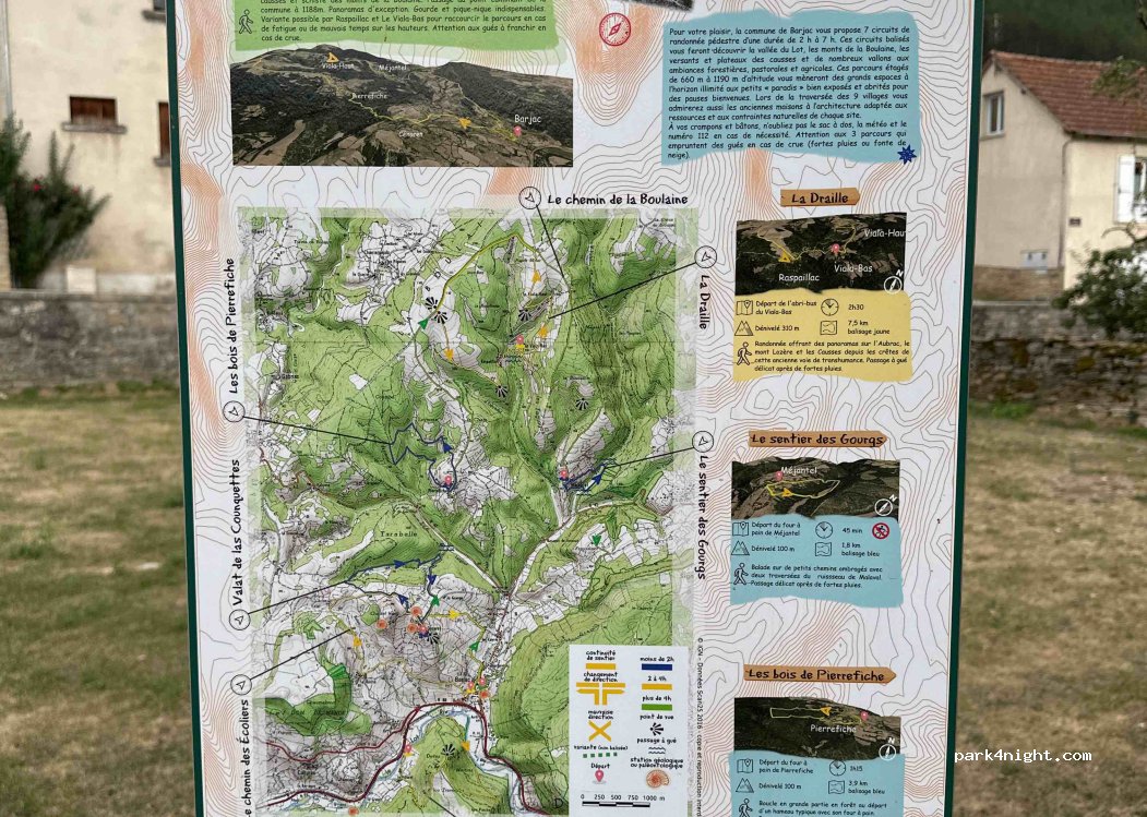 Pretty village, in the southern part of the Massif Central and at the northern end of the Causses basin. 8 hikes offered from Barjac. Free parking. Petanque court and playground. Public toilets. Bakery nearby.
