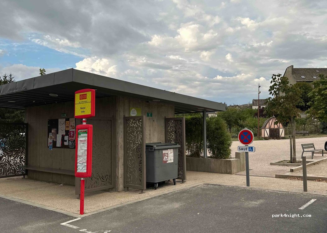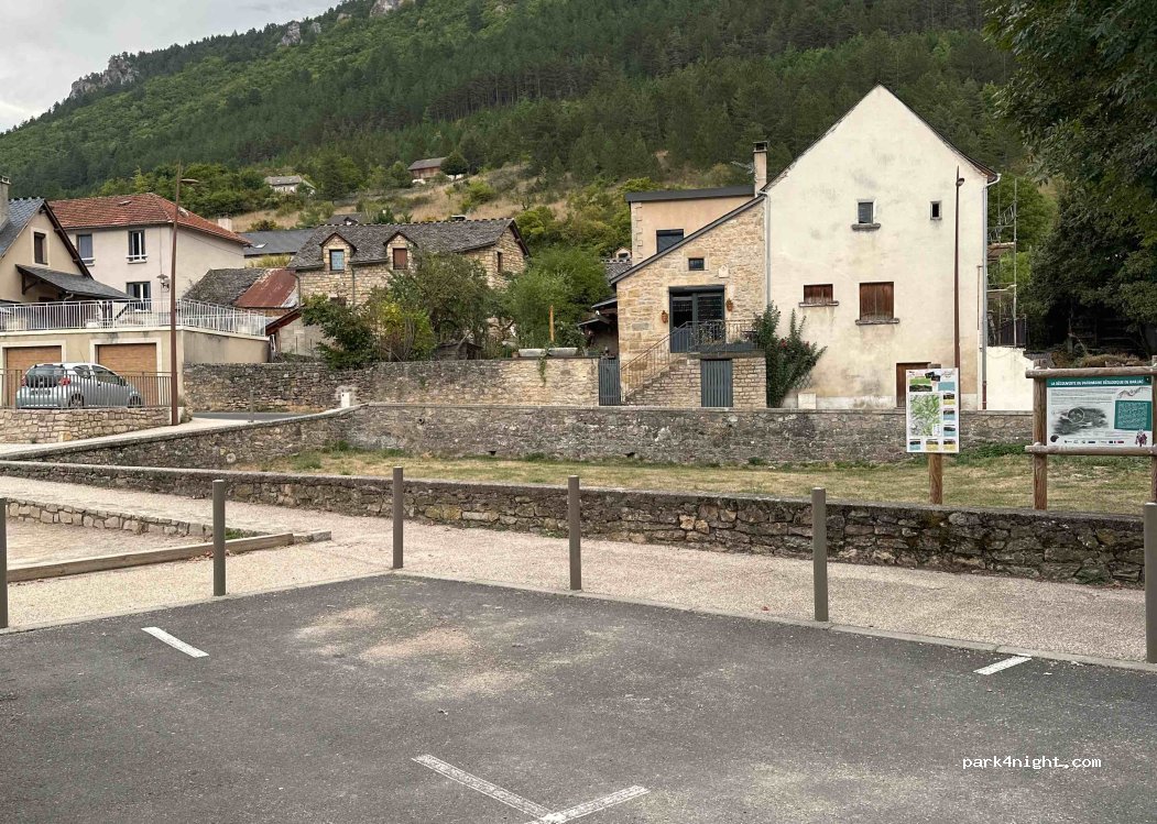 Ne convient pas du tout pour les camping-cars même pas pour les fourgons de 5,4 mètres. Nous nous sommes garés devant la mairie au calme et totalement plat. Ne convient pas pour les grands cc.