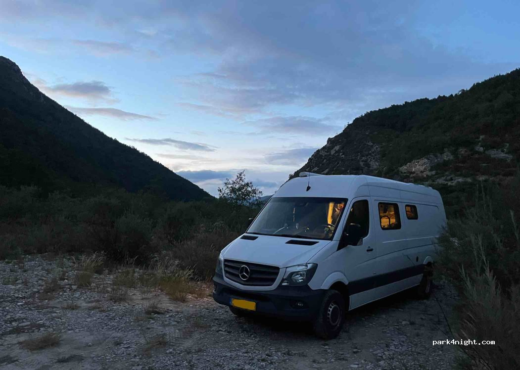Emplacement sympathique proche rivière. 4 places maximum. Nous entendons un peu la route mais la nuit a été calme. Un peu de difficulté à descendre tout en bas avec notre H3L3 mais en faisant attention, pas de souci. Très peu de réseau.
