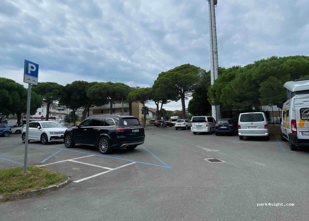 buon parcheggio con buona ombra vicino a una caserma della finanza per avere anche una buona sicurezza la notte vicino c'è anche una buona pizzeria un oasi per il camper non metto 5 stelle perché è a pagamento durante il giorno ma ottimo posto per portare anche il cane al mare visto che a pochi minuti c'è la bau beach.