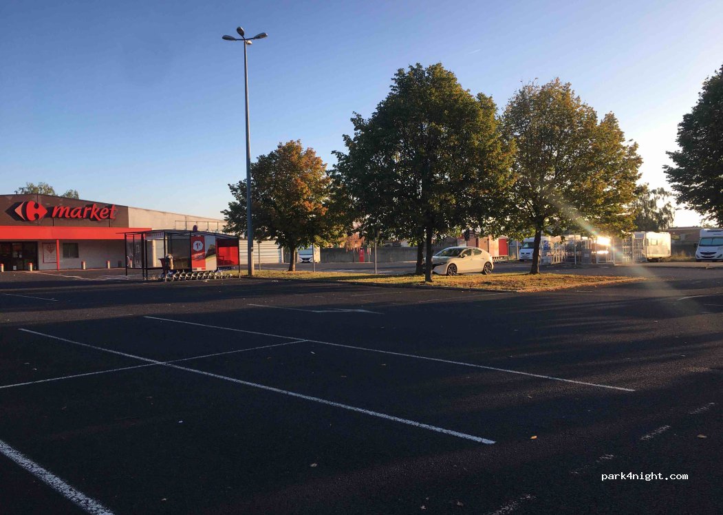 Sur le parking de Carrefour Market, c’est bien pour passer la nuit. Par contre il y a un peu de bruit la nuit.