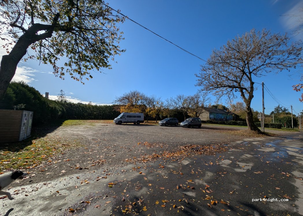 Merci pour cet endroit calme et proche d’un étang. Nous venons d’y passer la nuit. Aucun service juste un conteneur à verre.