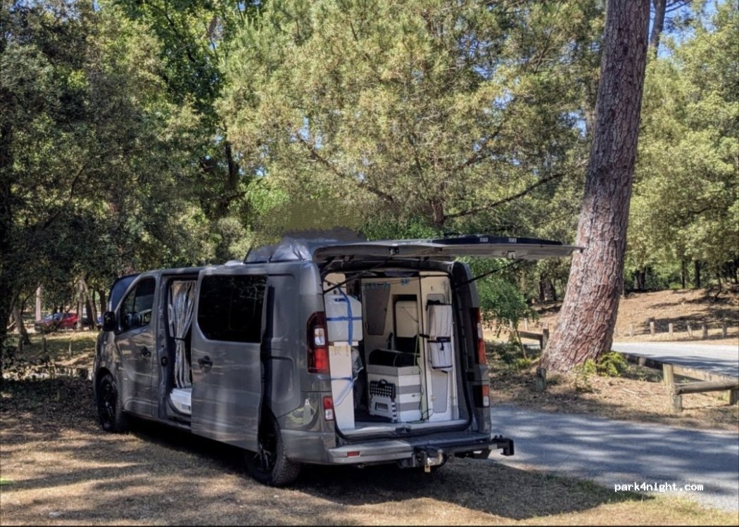 Proche plage, parking tranquille, de l'ombre, éloigné de la route, parfait limité à 2.20 m, interdit de 0h à 6h