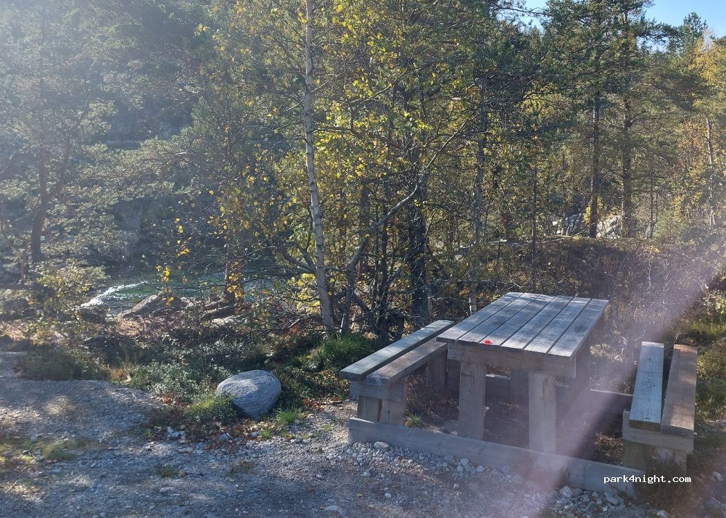 Je to vedle silnice a protože se dole opravuje silnice kvůli sesuvu(20.7.2025), tak je dost rušno od nákladních aut. Jinak hezké místo. Řeka nehučí tolik, jako dole