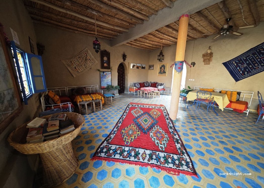 Camping - Auberge La Vallée des Dunes, face aux dunes de l'Erg Chebbi et de la palmeraie. Le centre du village (tous commerces) est à 300 m. Sur place : restaurant, laverie 6 chambres et 10 places de camping-car.