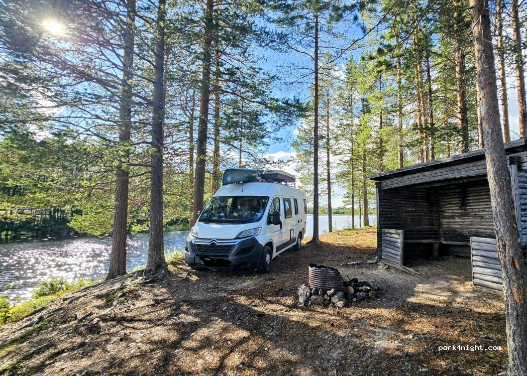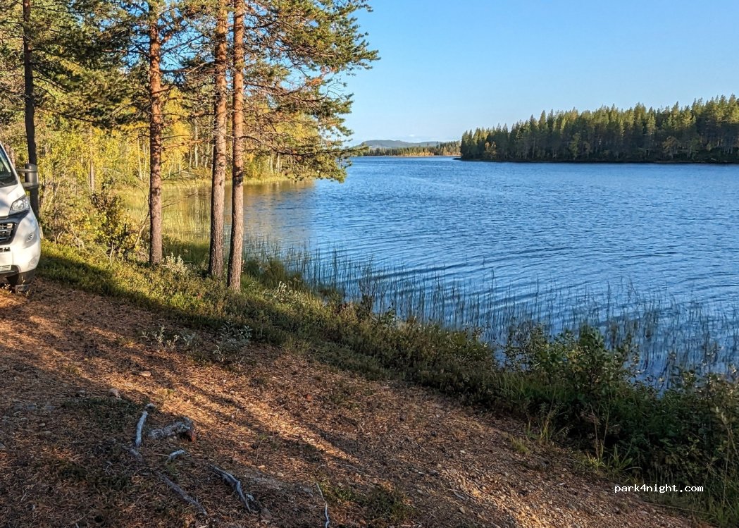 One of the most beautiful places on the lake: fantastic. As close to the water as in the photos, there is only a point on the forest floor. But 30 meters further on there is a large natural parking lot on gravel and sand soil, surrounded by few coniferous forests, with ample parking possibilities.