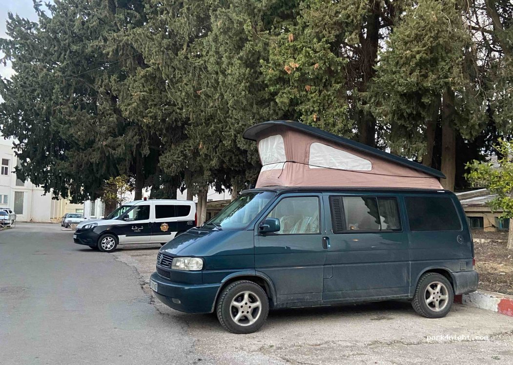 Good place for a night. Ask to the police station and they will check your passports and you can sleep on the parking lot. 10 min drive to the beautiful archeological site of Dougga.