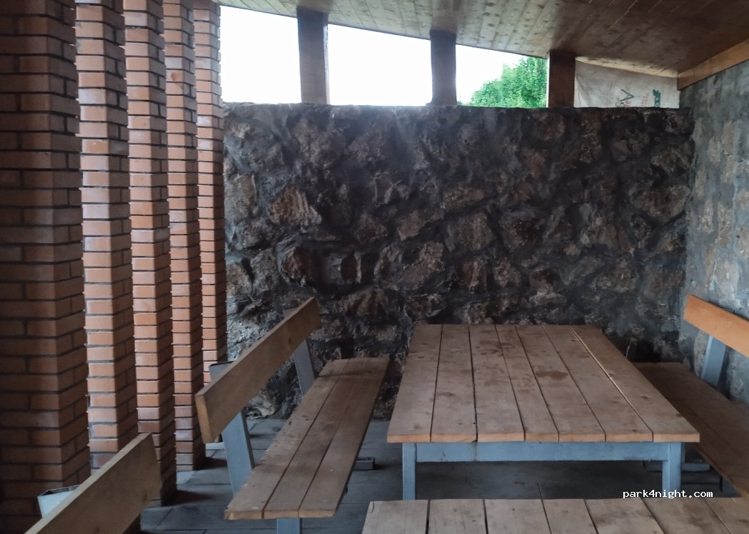 There is a picnic spot like a hut, with seats and tables, place for bonfire and rubbish container right on the lake shore. And small pine grove. You can see this place from the main road, but there is no asphalt to there from the main road
