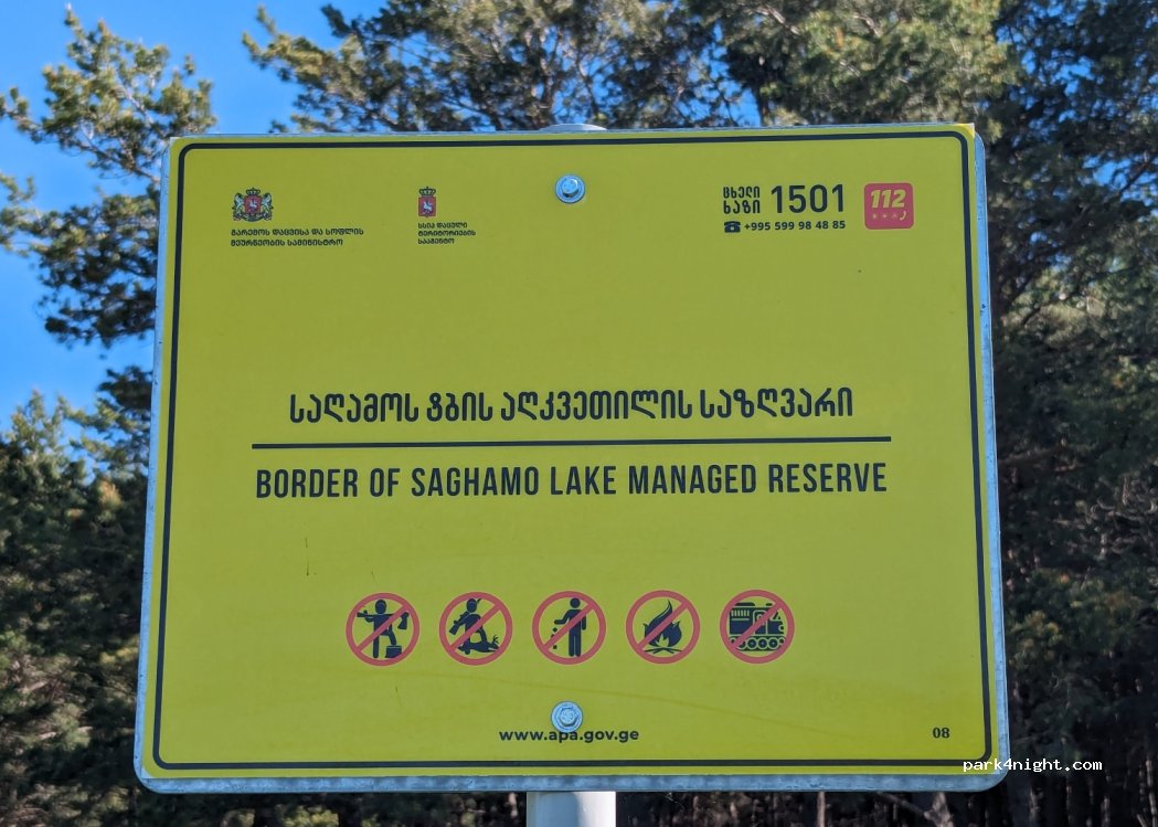 Direkt am Seeufer gibt es einen Picknickplatz in Form einer Hütte mit Sitzgelegenheiten und Tischen, Lagerfeuerplatz und Müllcontainer. Und kleiner Pinienhain. Sie können diesen Ort von der Hauptstraße aus sehen, aber von der Hauptstraße aus gibt es keinen Asphalt dorthin