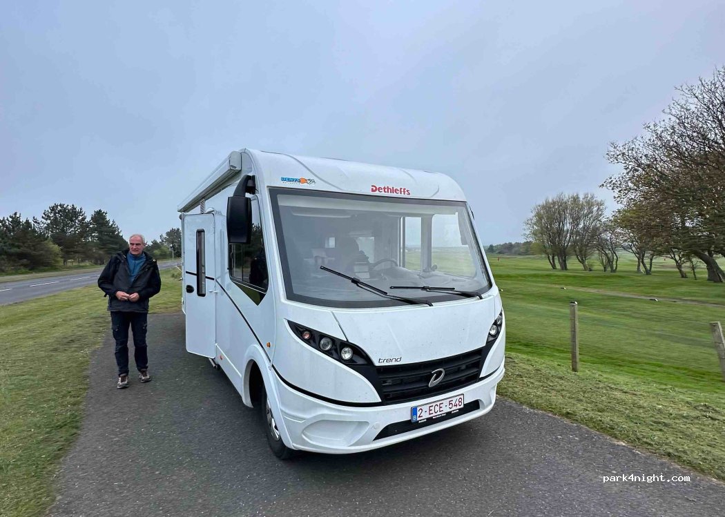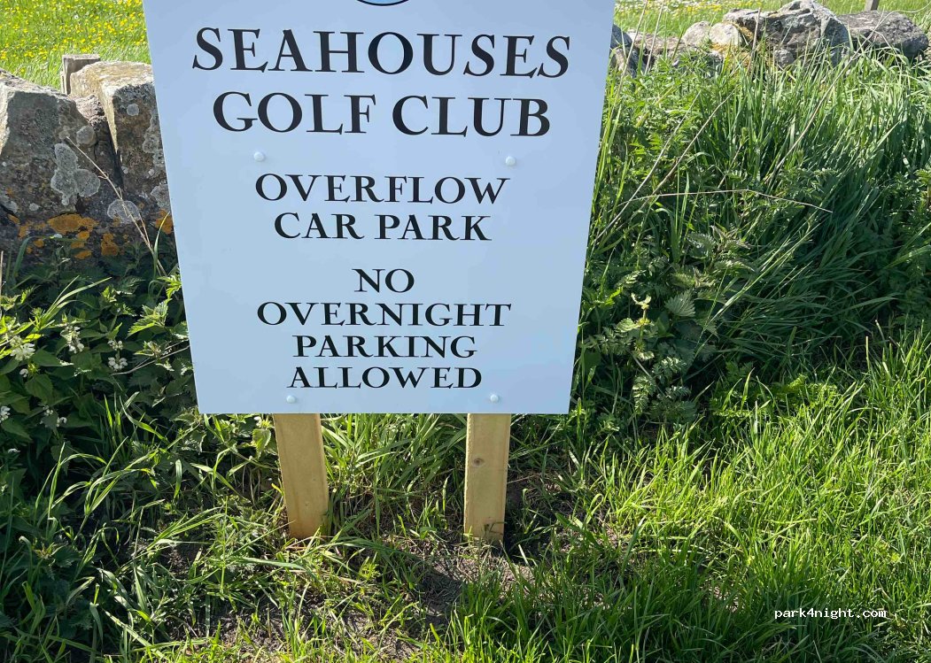 Great hardstanding parking opposite the golf course, there is a rubbish bin but no other facilities, plenty of room for a 7.5 meter MH, plus other parking, only a short walk in to Seahouses, plenty of shops to look round.