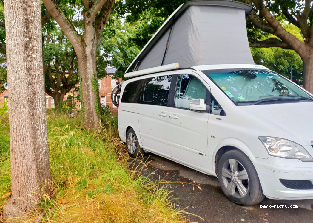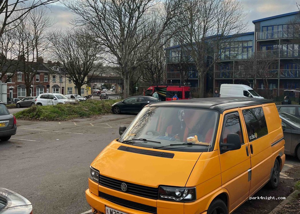 Okehampton Road car park just up from the quay. Plenty of space. Right next to the River Exe so great for walking/cycling. Would definitely stay here again