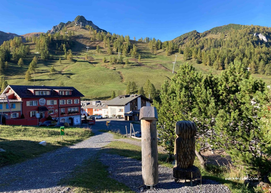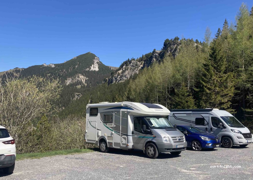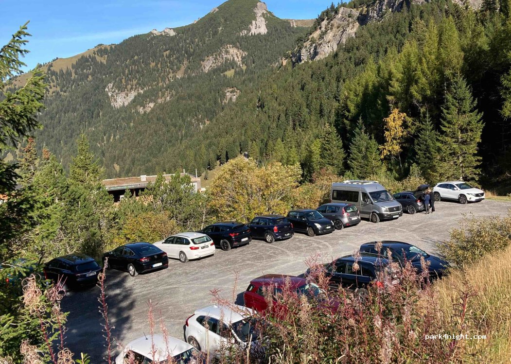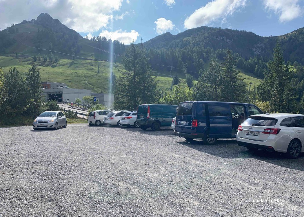 Very peaceful slightly sloped free car park with great views to wake up to. Easy 5 min walk into Malbun. A few hill walkers arrived in the morning but plenty of spaces and relaxed atmosphere. What more do you want?
