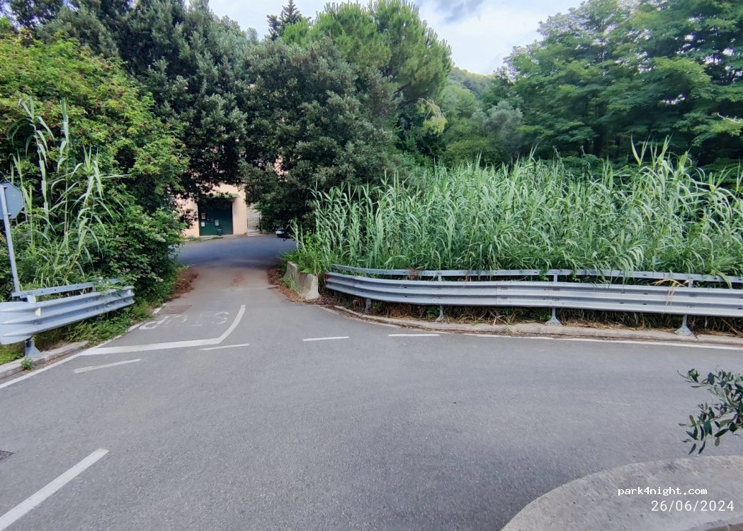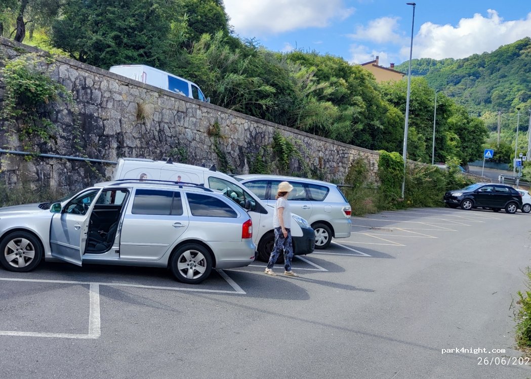 Parcheggio gratuito con posti a spina di pesce, accanto ad una rotonda. Leggermente rumoroso quando qualcuno cammina in giro ma accettabile per una notte nella zona.